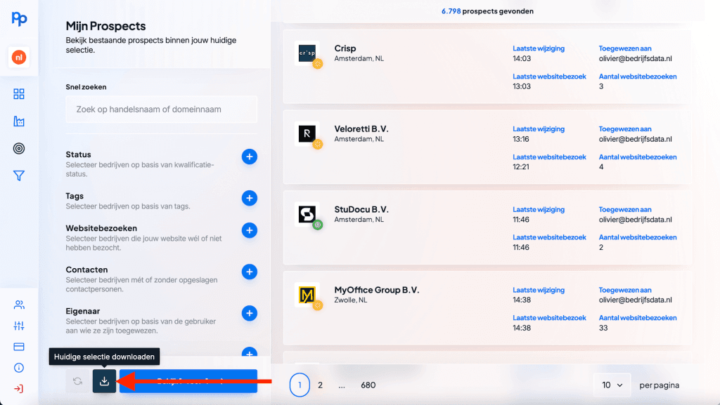Zodra je de juiste prospects hebt gevonden, wil je ermee aan de slag in je eigen tooling: